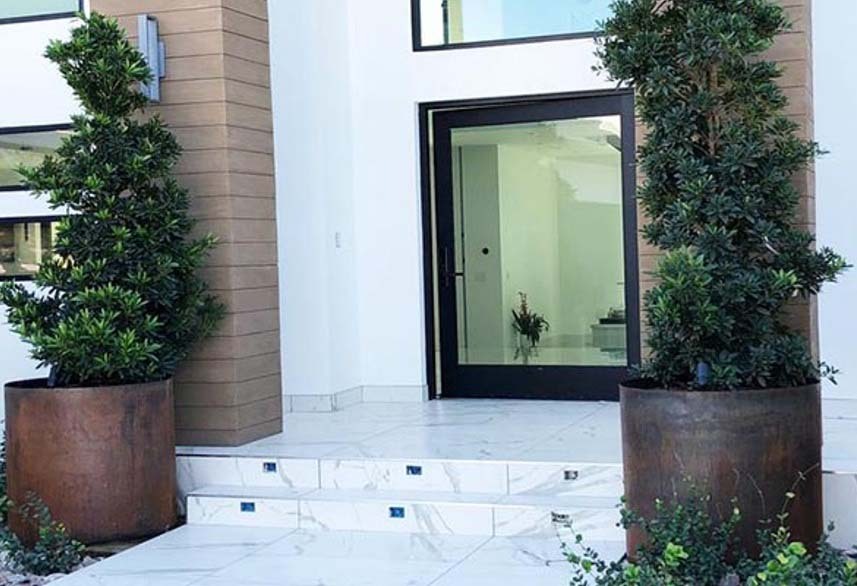 Frame entrances: Use matching corten planters at gateways or doorways.